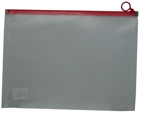 Brainware A4 Clear Carry Folder With Red Easy Slide Zip